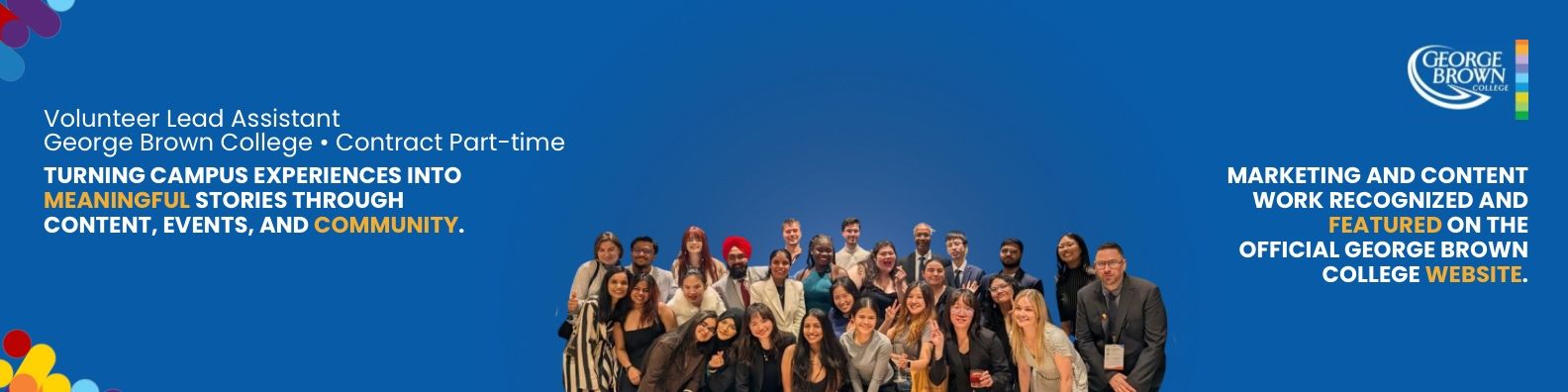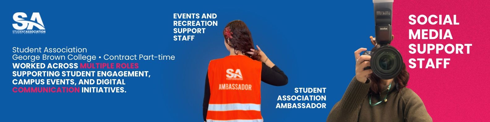 From there, I joined the Student Association, George Brown College, expanding my role into student support, event promotion, and social media, which helped me understand how communication and marketing connect people and communities.