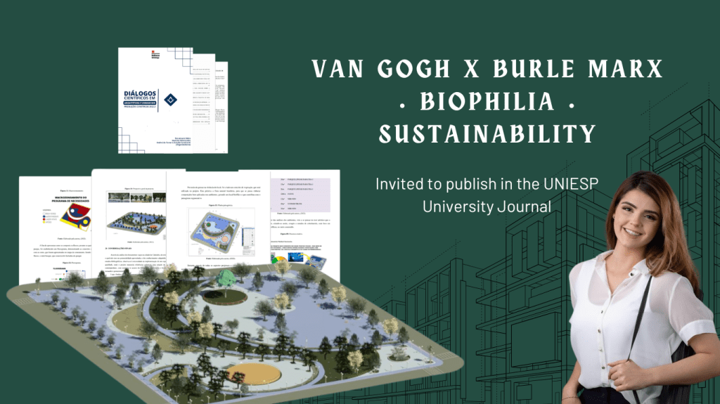 My academic background in Architecture and Urbanism allowed me to explore how design, nature, and human experience connect. One of my research projects examined the relationship between Van Gogh’s artistic expression, Roberto Burle Marx’s landscape design, and the concept of Biophilia, focusing on how natural environments can improve well-being and sustainability in urban spaces.